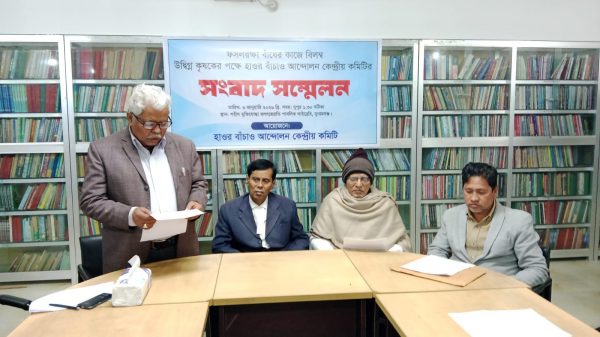 স্টাফ রিপোর্টার:: হাওরের বোরো ফসল রক্ষা বাঁধের কাজে বিলম্বের প্রতিবাদে ও দ্রুত কাজ শুরুর দাবিতে কৃষকদের পক্ষে সাংবাদিক সম্মেলন করেছে হাওর বাঁচাও আন্দোলন। মঙ্গলবার দুপুরে শহীদ মুক্তিযোদ্ধা জগৎজ্যোতি পাবলিক লাইব্রেরি মিলনায়তনে অনুষ্ঠিত সংবাদ সম্মেলনে নেতৃবৃন্দ কাজ শুরু না হওয়ায় গভীর উদ্বেগ জানান। সংবাদ সম্মেলনে সভাপতিত্ব করেন সংগঠনের কেন্দ্রীয় কার্যকরী সভাপতি অ্যাডভোকেট স্বপন কুমার দাস রায়।
