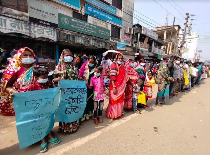 বক্তারা অবিলম্বে প্রকৃত খুনীদের গ্রেপ্তার করে দৃষ্ঠান্তমূলক শাস্তির দাবি জানান। প্রতিবাদ কর্মসূচিতে বৃদ্ধা নারী, তরুণী, গৃহিণী ও শিশুরাও অংশ নেন। তারা হাতে প্লেকার্ড নিয়ে বিচারের দাবি জানান।