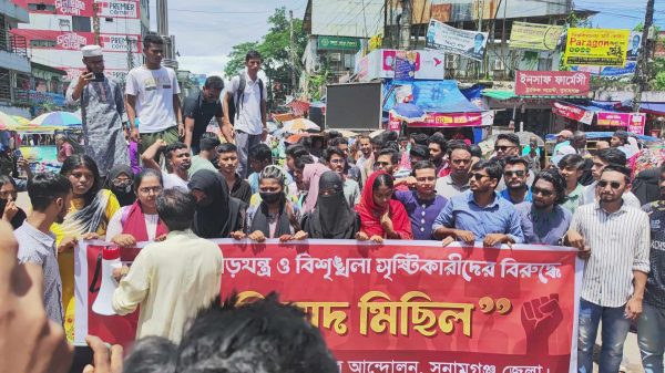 স্টাফ রিপোর্ার:: সচিবালয়ে আনসার সদস্য কর্তৃক শিক্ষার্থীদের মারধর, ষড়যন্ত্র ও নৈরাজ্য সৃষ্টির প্রতিবাদে সুনামগঞ্জের প্রতিবাদ মিছিল করেছে বৈষম্যবিরোধী ছাত্র আন্দোলনের শিক্ষার্থীরা। আজ সোমবার দুপুরে শহরের পুরাতন কোর্ট এলাকা থেকে একটি