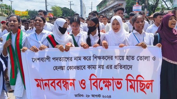 বিশেষ প্রতিনিধি:: দেশব্যাপী শিক্ষকদের গায়ে হাত তোলা, হেনস্থা ও জোরপূর্বক পদত্যাগে বাধ্যকরাসহ শিক্ষক লাঞ্চনার প্রতিবাদে মানববন্ধন ও বিক্ষোভ মিছিল করেছে সুনামগঞ্জ বৈষম্য বিরোধী ছাত্র আন্দোল। কর্মসূচিতে শহরের বিভিন্ন স্কুল কলেজের