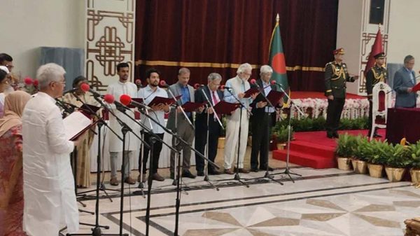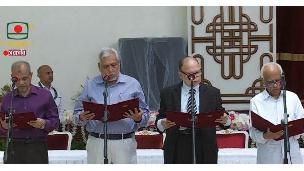 হাওর ডেস্ক:: ড. ইউনূসের নেতৃত্বাধীন অন্তর্বর্তী সরকারে আরো চারজন উপদেষ্টা যুক্ত শপথ নিয়েছেন। শুক্রবার (১৬ আগস্ট) বিকেল ৪টার পর বঙ্গভবনে নতুন উপদেষ্টাদের শপথ পাঠ করান রাষ্ট্রপতি মো. সাহাবুদ্দিন। এ সময়