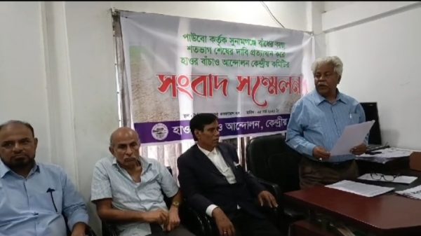 স্টাফ রিপোর্টার:: হাওরের ফসলরক্ষা বাঁধ নির্মাণ কাজ ৯৮ ভাগ শেষ হয়েছে এমন দাবি প্রত্যাখান করে সংবাদ সম্মেলনে করেছে হাওর ও কৃষকের সংগঠন হাওর বাঁচাও আন্দোলন। দুপুরে সুনামগঞ্জ শহরের তাদের অস্থায়ী