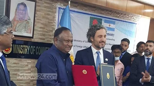 হাওর ডেস্ক:: ভোগ্যপণ্যের অন্যতম যোগানদাতা দেশ আর্জেন্টিনার সঙ্গে বাণিজ্য-বিনিয়োগ সম্পর্ক আরও বাড়াতে আগ্রহ দেখিয়েছে বাংলাদেশ। মঙ্গলবার সচিবালয়ে আর্জেন্টিনার ফরেন অ্যান্ড ইন্টারন্যাশনাল ট্রেড মিনিস্টার সান্তিয়াগো কাফিরোর সঙ্গে বাণিজ্যমন্ত্রী টিপু মুনশির বৈঠকে