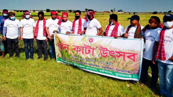 মোঃ মোশফিকুর রহমান স্বপন: সুনামগঞ্জ জেলার ধর্মপাশা উপজেলার পাইকুরাটি ইউনিয়নের আতলাই হাওরে, সোমবার দুপুর আড়াইটায় উপজেলা প্রশাসনের সহযোগীতায় কৃষি সম্প্রসারণ অধিদপ্তর আতলাই হাওরে ধান কাটা উৎসবের আয়োজন করে। এ সময়