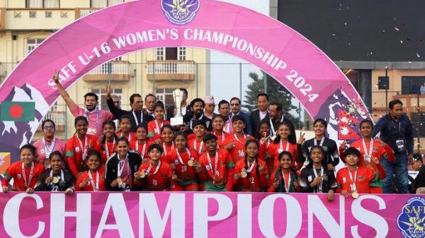 হাওর ডেস্ক:: ম্যাচের গতিপথ বুঝে ওঠার আগেই গোল খেয়ে পিছিয়ে পড়ে বাংলাদেশ। সেই ধাক্কা প্রথমার্ধে আর সামাল দিতে পারেনি সাইফুল বারীর শিষ্যরা। কিন্তু দ্বিতীয়ার্ধে চেনা রূপে দেখা মেলে সুরভী-মরিয়মদের। গোল