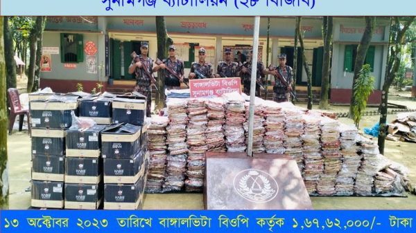 স্টাফ রিপোর্টার:: সুনামগঞ্জের মধ্যনগর সীমান্তে চোরাচালান বিরোধী অভিযান পরিচালনা করে ভারত থেকে শুল্ক ফাকি দিয়ে নিয়ে আসা ১ কোটি ৬৭ লক্ষ টাকার অবৈধ পণ্য আটক করেছে সুনামগঞ্জ-২৮ বিজিবি। ১৪ অক্টোবর
