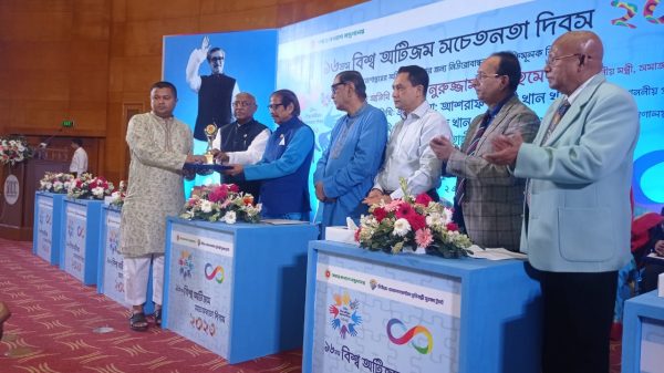 বিশেষ প্রতিনিধি:: অটিজম বৈশিষ্ট্যসম্পন্ন জনগোষ্ঠীর উন্নয়ন ও সুরক্ষায় নিরলসভাবে কাজ করার স্বীকৃতি স্বরূপ সুনামগঞ্জের তরুণ ব্যবসায়ী ও সমাজসেবী মো. জিয়াউল হককে বিশেষ সম্মাননা দিয়েছে জাতীয় সমাজকল্যাণ মন্ত্রণালয়। ১৬ তম বিশ্ব