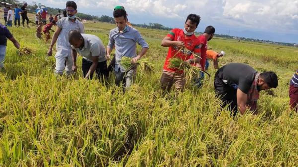 স্টাফ রিপোর্টার:: সুনামগঞ্জ শহরতলির কালিপুর এলাকায় এক দরিদ্র কৃষকের জমির ধান স্বেচ্ছাশ্রমে কেটে দিয়েছেন সুনামগঞ্জ জেলা ছাত্রদলের নেতৃবৃন্দ। সোমবার দুপুরে তারা কালিপুরে গিয়ে ওই কৃষকের ধান কেটে দেয়। তারা ওই